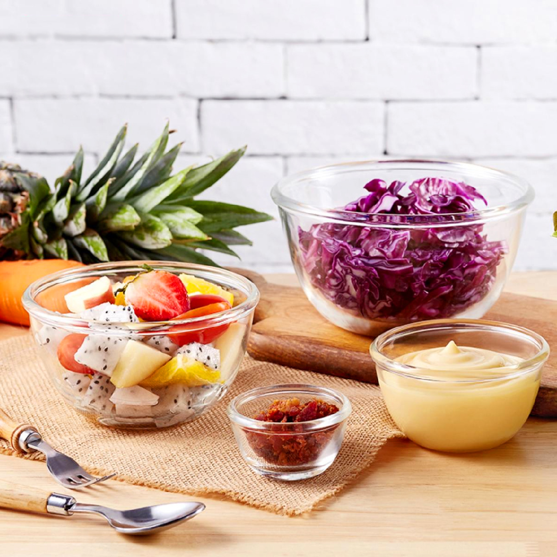 ถ้วยอาหาร ถ้วยแก้ว ชามแก้ว LG222007 (20001) ใช้สำหรับเสิร์ฟอาหาร เช่น สลัด ซุป ของต้มต่างๆ ขนาดโดยประมาณปากกว้าง 18cm (~7 นิ้ว) สูง 9.5cm